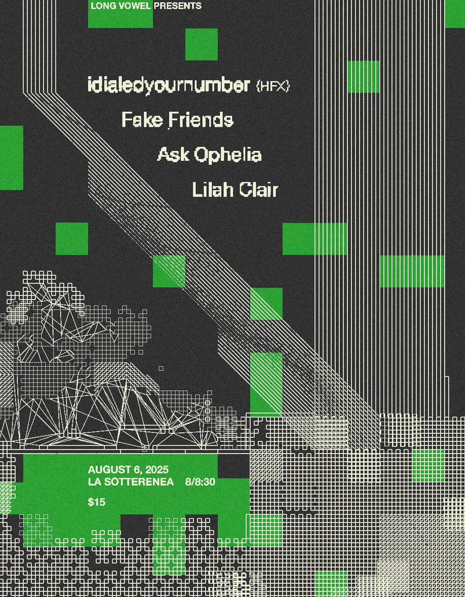 my name is jessie (she/her), aka idialedyournumber. i'm an audio engineer, technology lover, fashion enthusiast, and very spontaneous person. this website is intended to share my self-produced music links, merch + tour announcements, and silly blog posts.